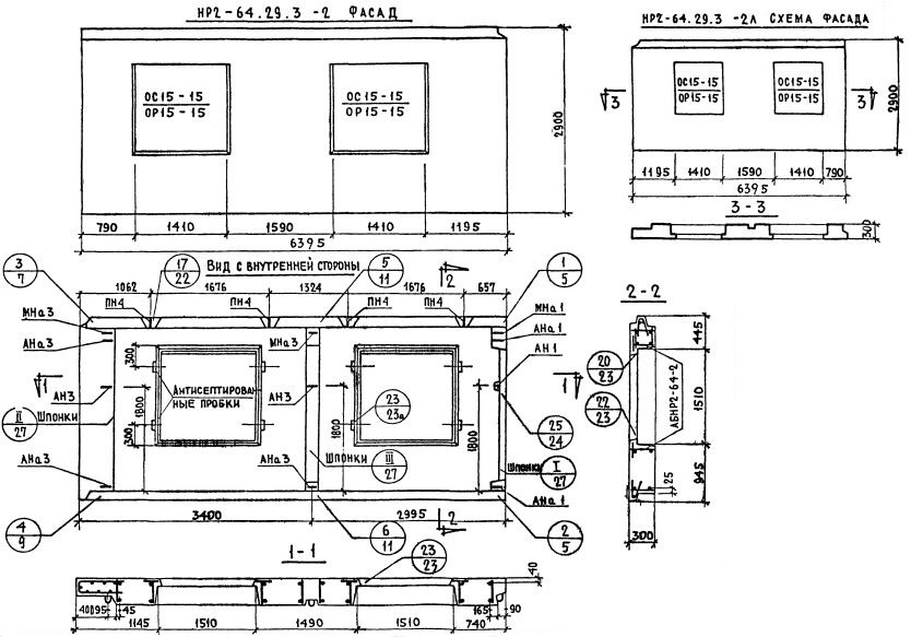 НР2-64.29.3-2л   Наружная стеновая панель рядовая по Серии 1.132-1.